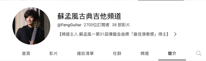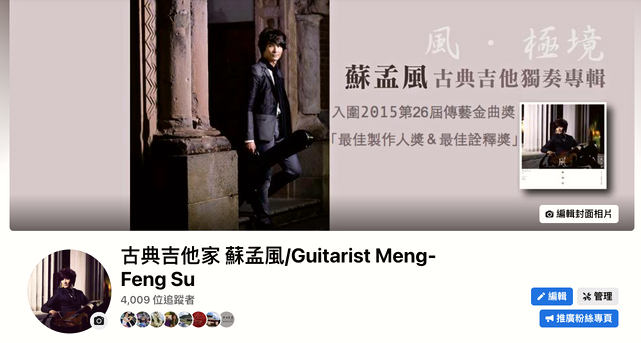 知名留法吉他家蘇孟風,第31屆傳藝金曲獎「最佳演奏獎」得主。個人獨奏專輯《風.極境》獲得第26屆傳藝金曲奬提名「最佳詮釋獎」、「最佳專輯製作人獎」,2019年與小提琴家李宜錦合作出版《NSO 首席之聲~調和的靈感》小提琴、吉他二重奏專輯,入圍第31屆傳藝金曲獎「最佳演奏獎」、「最佳專輯製作人獎」、「最佳藝術音樂專輯」等五項大獎。2017年於28屆傳藝金曲獎典禮擔任演出嘉賓,同年受邀參與54屆金馬獎典禮,現場演出最佳原創電影入圍歌曲。